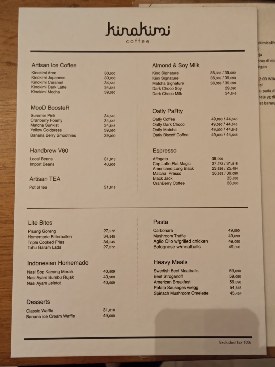 Located in the heart of Bandung, Kinokimi Coffee is a cozy retreat famed for its inviting ambiance and a highly curated coffee experience. The café features a modern yet warm interior, ideal for relaxing solo or socializing with friends. One standout is the Kimi Signature coffee, an espresso blended with premium almond milk, creating a silky, lactose-free delight topped with cream and cocoa powder.